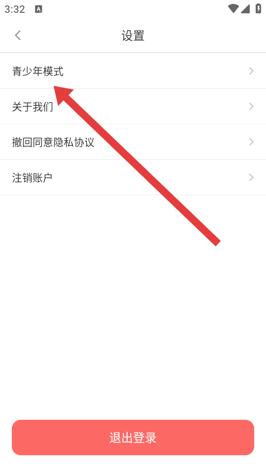 3、在设置界面点击青少年模式,进入青少年模式设置的页面。