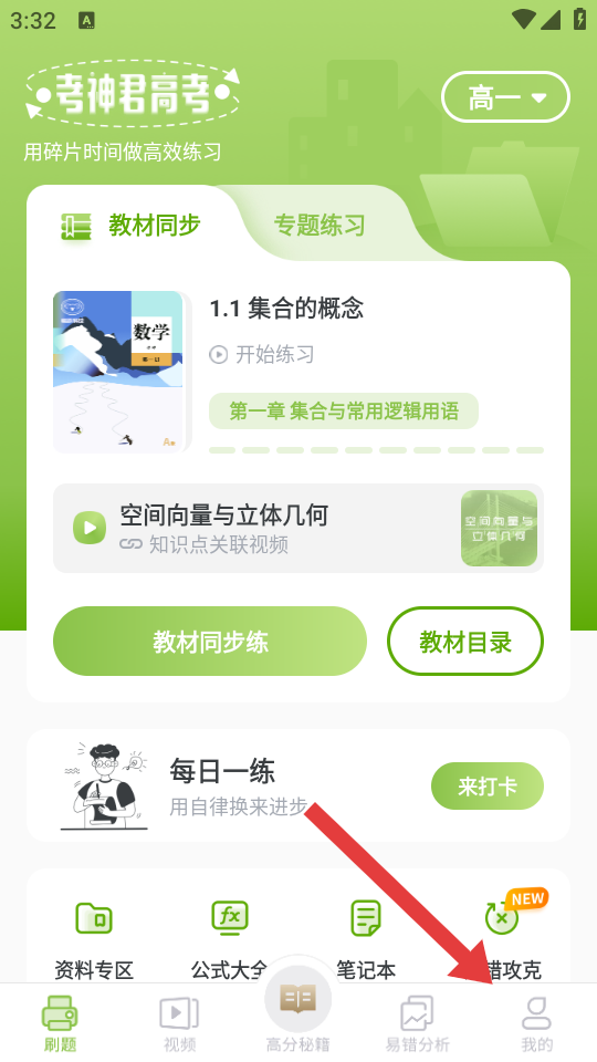 1、在高中数学APP的首页,点击右下角我的,进入个人的页面。