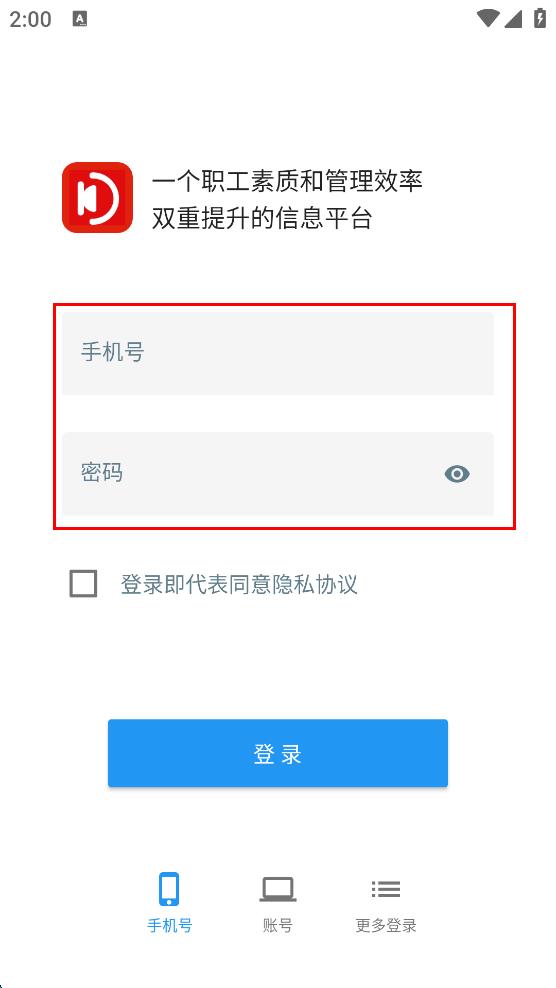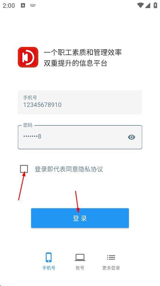 4、勾选“登录即代表同意隐私协议”,最后点击“登录”,即可完成职工信息平台的登录。