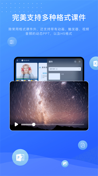 支持复杂PPT动画功能,可以在直播过程中播放PPT动画及音视频文件。