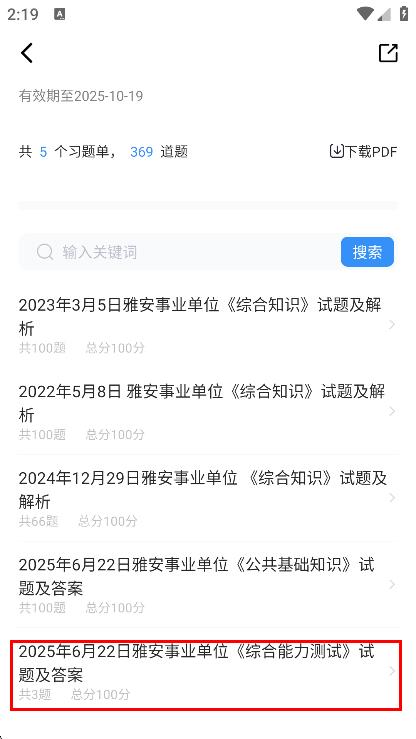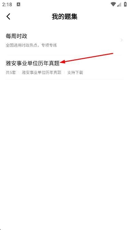 3、在我的题集页面,点击雅安事业单位历年真题,进入页面。