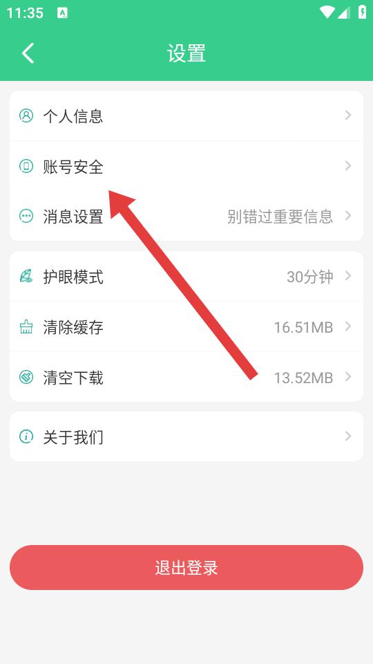2、在设置界面,点击账号安全的选项,进入账号安全的页面。