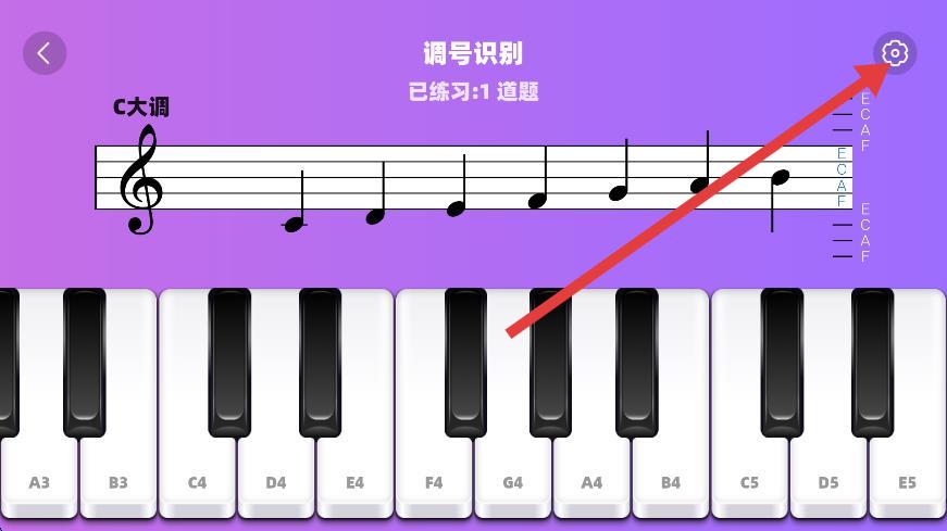 3、进入调号练习界面后,点击右上角的齿轮状设置图标。