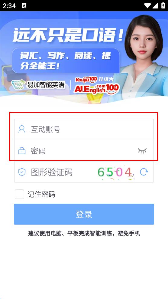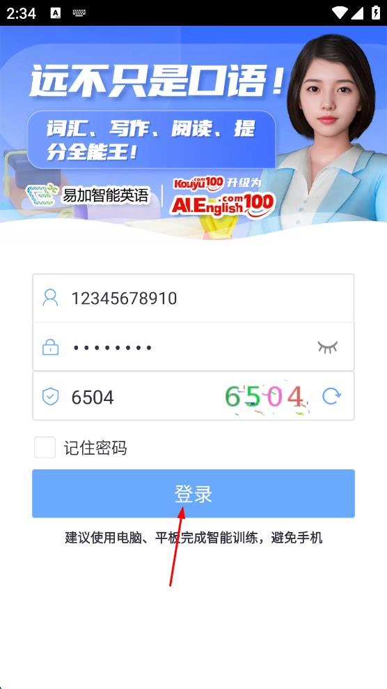 4、若需要下次快速登录,可勾选“记住密码”,最后点击“登录”,即可完成易加智能英语的登录。