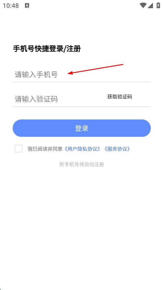 2、在登录页面,找到“请输入手机号”输入框,点击该输入框,输入需要登录的手机号码。