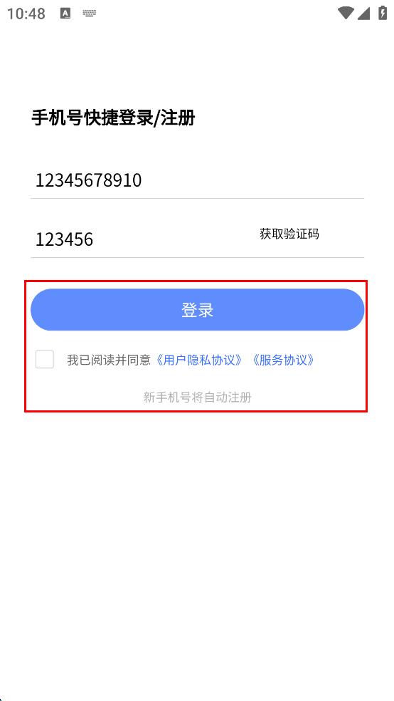 4、勾选“我已阅读并同意用户隐私协议,服务协议,最后点击“登录”按钮,即可完成安全考试APP的手机号登录操作。