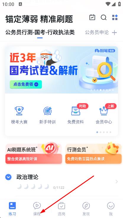 1、专项题库刷题:打开App后选择对应备考类别(如公务员申论),进入专项题库,挑选目标题型或考点开始答题,作答完成后可直接查看答案与解析。
