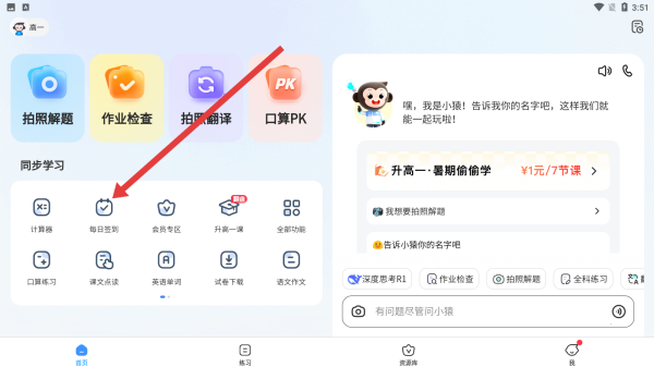 1、在APP首页同步学习板块,点击每日签到图标,进入签到页面,可参与签到活动,积累连续天数获取奖励,开启日常签到流程。