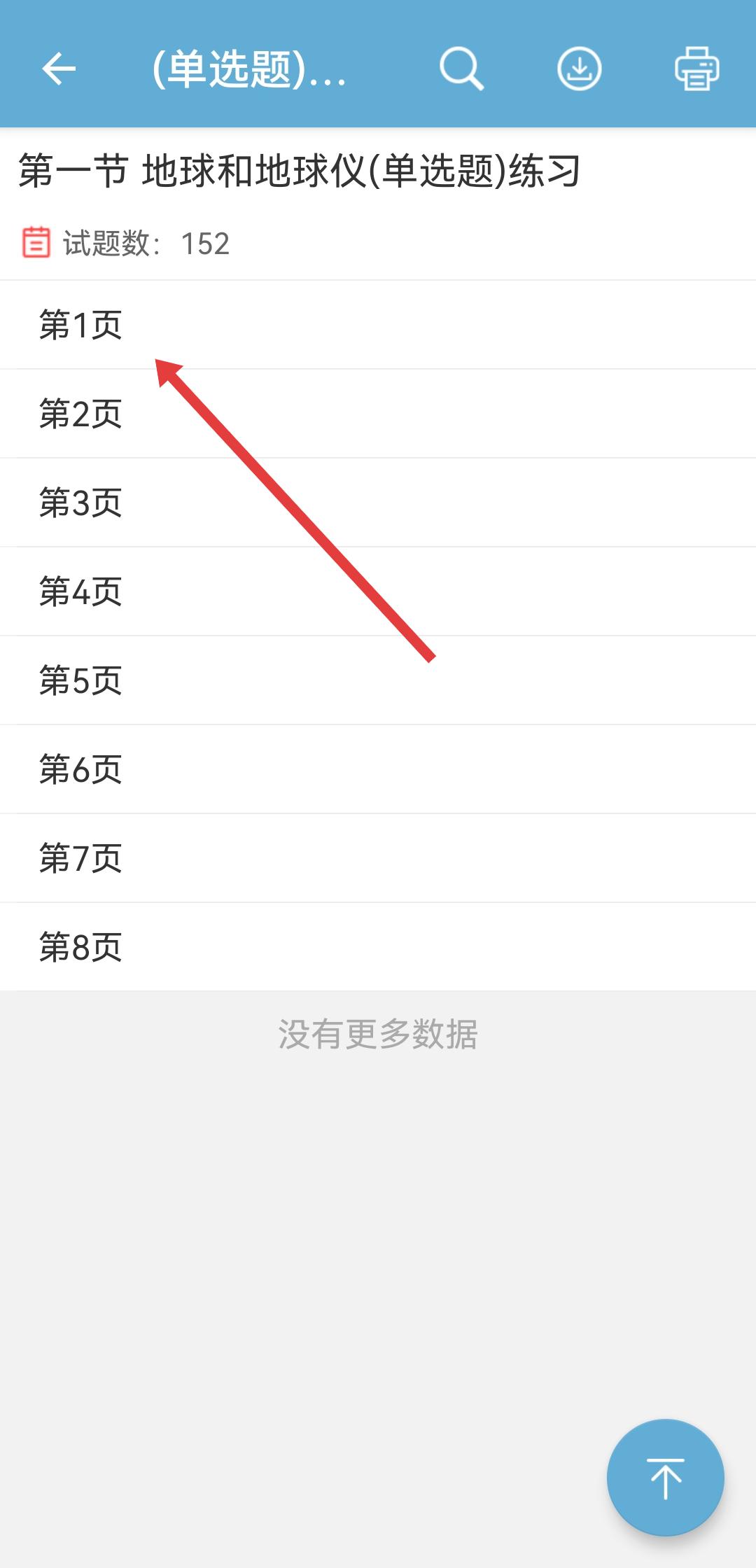 4、进入题目的页面后,选择页码如第1页,即可开始刷题练习。