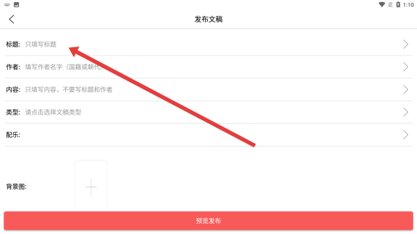 2、在进入到发布文稿页面中时,可以点击标题输入框进行输入。