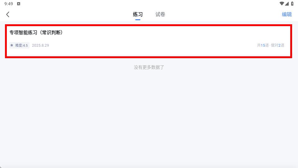 3、在练习历史界面里,就能看到之前做过的题目记录,还能查看题目难度、练习日期、题目数量和答对情况等信息。