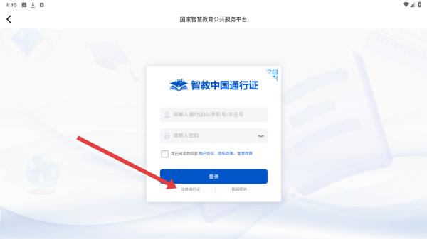 2、在国家智慧教育公共服务平台登录界面,点击注册账号选项,跳转至手机号注册页面。