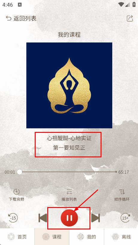 4、进入音频播放页面后,可点击暂停按钮控制音频播放。