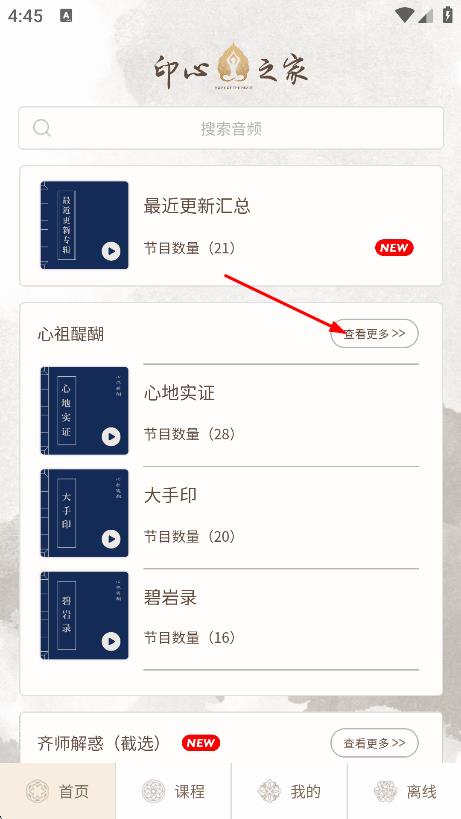 1、点击心祖醍醐右侧的查看更多,进入心祖醍醐页面。