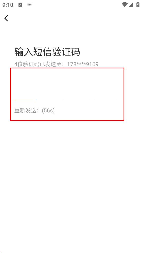 3、在短信验证码输入页面,输入发送到对应手机号的4位验证码,完成验证。