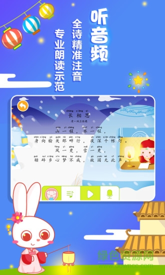 精选100首幼儿必读经典诗词,配有精美场景插图和专业朗诵示范,支持录音跟读,点赞互动,寓教于乐学古诗,让孩子爱上古诗!