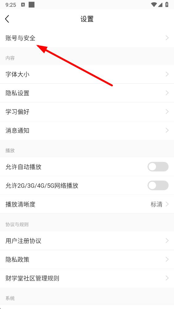 2、在设置页面里,点击账号与安全选项,进入账号安全设置界面。