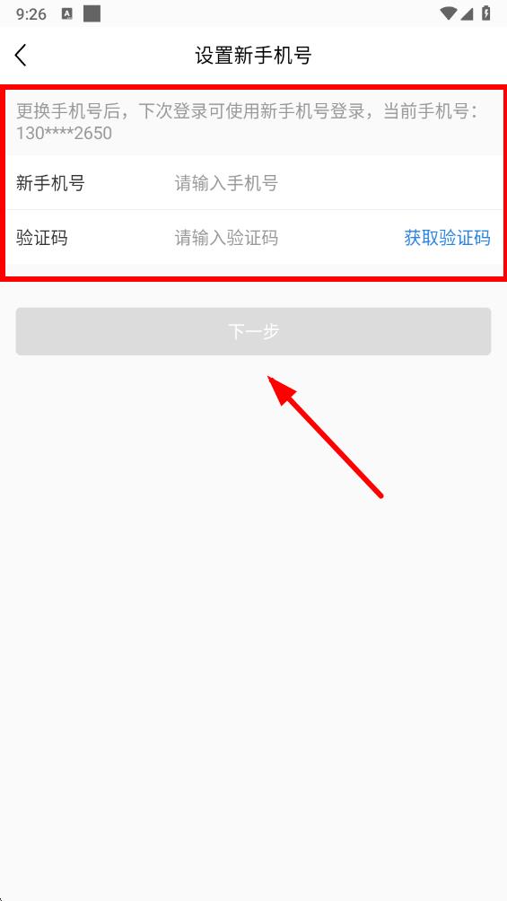 5、在设置新手机号页面,输入新手机号并获取验证码,填写完成后点击下一步,即可完成手机号码的修改。