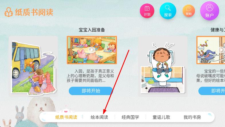 1、在软件页面,点击绘本阅读,进入绘本阅读页面。