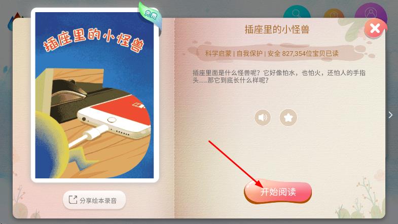 3、在绘本详情页面,点击开始阅读,进入绘本阅读界面。