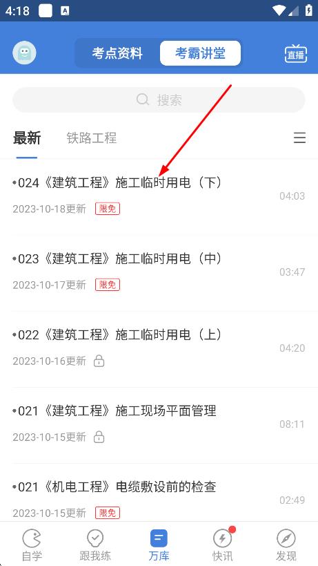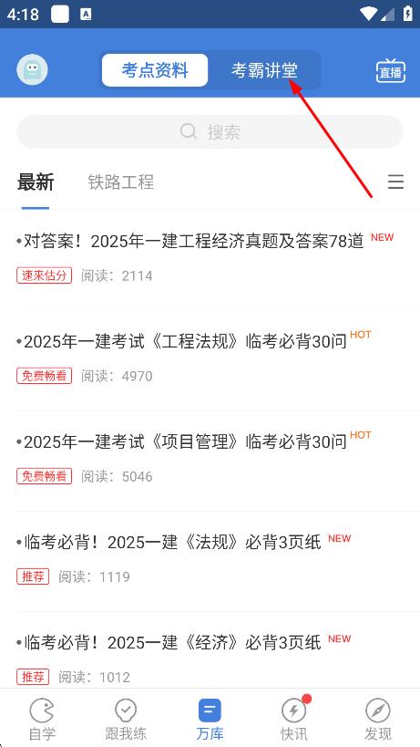 2、在万库页面,点击考霸讲堂,进入考霸讲堂页面。
