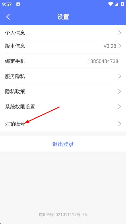 3、在设置页面,点击注销账号,进入注销账号确认页面。