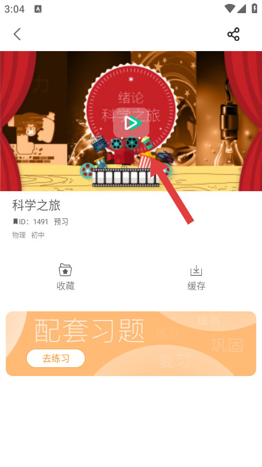 4、在课程详情页面点击播放按钮开始学习,还可点击去练习做配套习题。