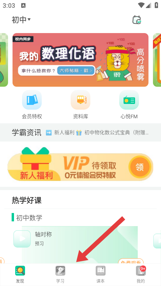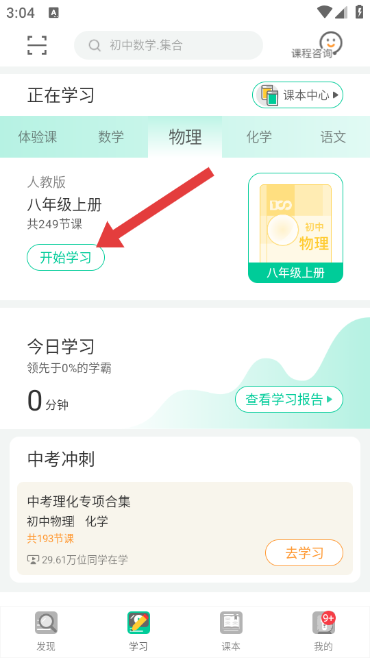 1、在首页点击学习,进入学习页面,可选择对应学科和教材。