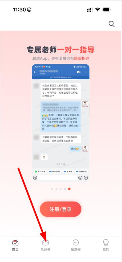 1、在拓词APP界面,点击底部单词书选项,进入单词书页面。