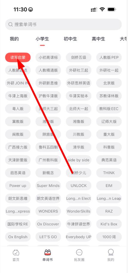 3、在小学生单词书列表中,找到读写启蒙分类并点击。