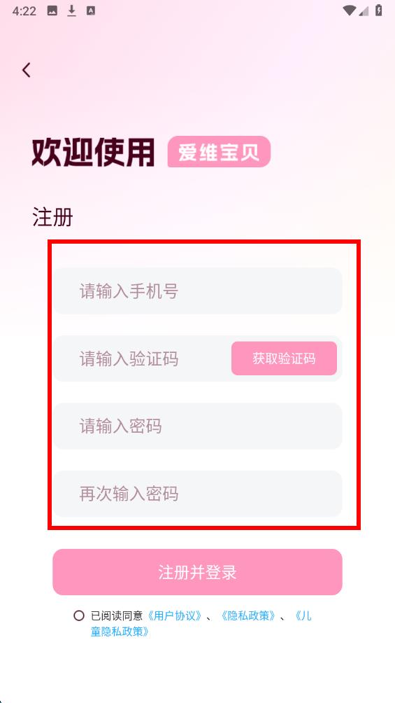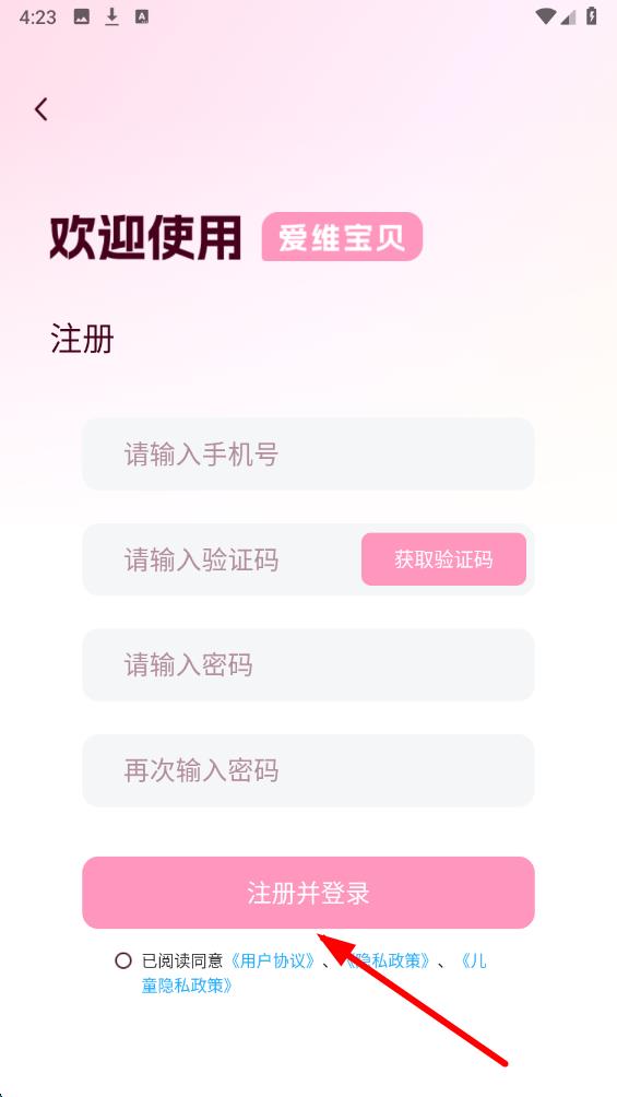 3、最后点击注册并登录按钮,即可完成爱维宝贝的注册。