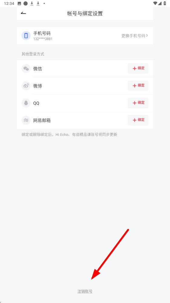 3、在账号与绑定设置页面底部,点击注销账号选项,随后按照页面提示进行身份验证,即可完成账号注销。