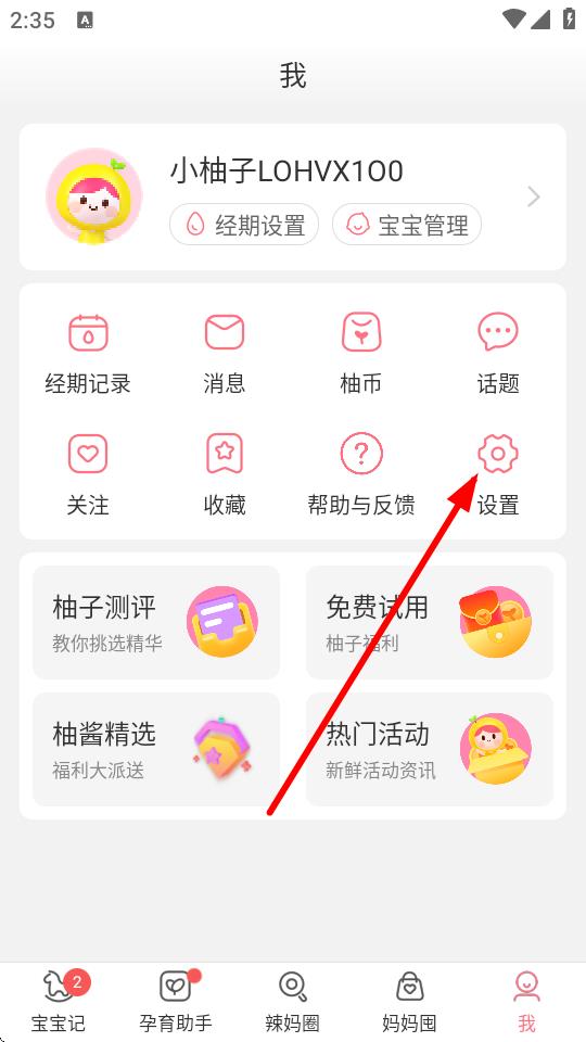 1、打开柚宝宝应用,点击底部导航栏我,进入个人页面。