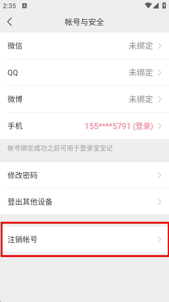 4、在帐号与安全页面,点击注销帐号,按提示完成注销操作。