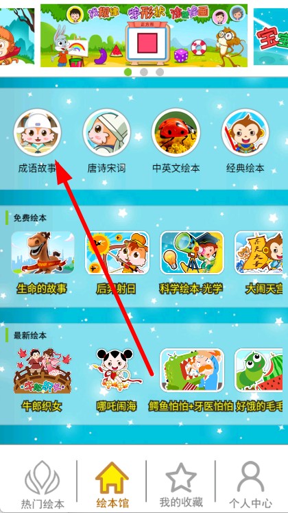 3、在绘本馆分类页面,点击成语故事分类,进入成语故事列表页面。