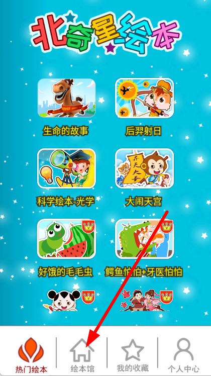 2、在功能选择页面,点击底部的绘本馆选项,进入绘本馆分类页面。