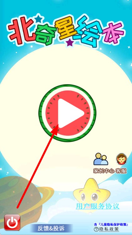 1、打开北奇星绘本,进入主界面后,点击中间的西瓜形状播放按钮。