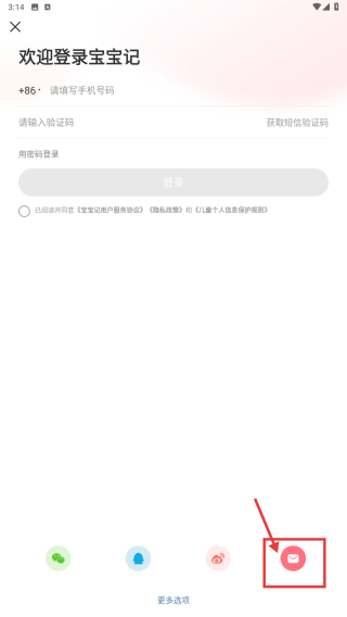3、在登录方式选择界面,点击邮箱登录图标,进入邮箱登录页面。