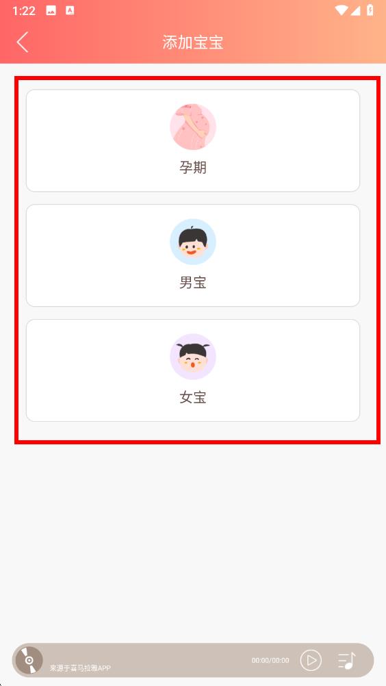 3、在添加宝宝界面,根据实际情况选择孕期、男宝或女宝。