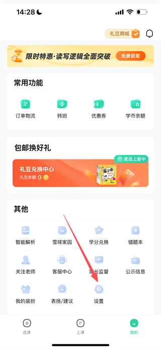 1、在好课在线首页,点击底部的我的选项,进入个人中心页面。