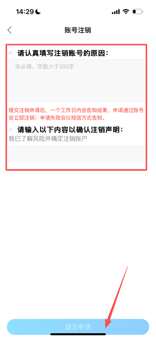 5、在注销信息填写页面,填写信息后,点击提交申请即可完成注销。