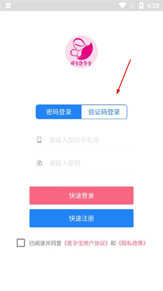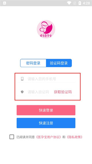 1、打开医孕宝成长孕育APP,查看弹出的用户协议和隐私政策提示,点击同意按钮进入应用。