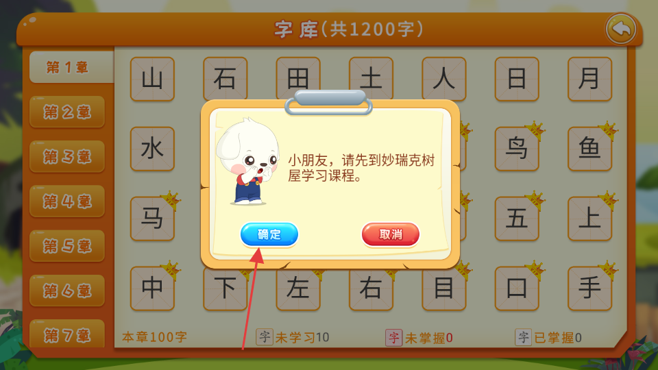 3、在提示框中,点击确定按钮,前往妙瑞克树屋学习课程。