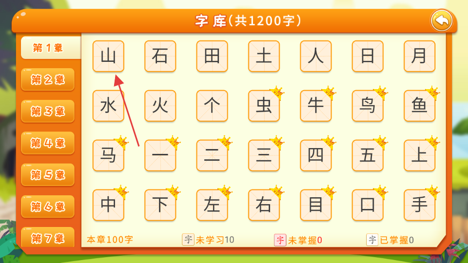1、选择游戏学习:打开软件后进入游戏板块,根据孩子当前的识字进度与兴趣偏好挑选合适的识字游戏,通过完成游戏任务接触并学习对应汉字。