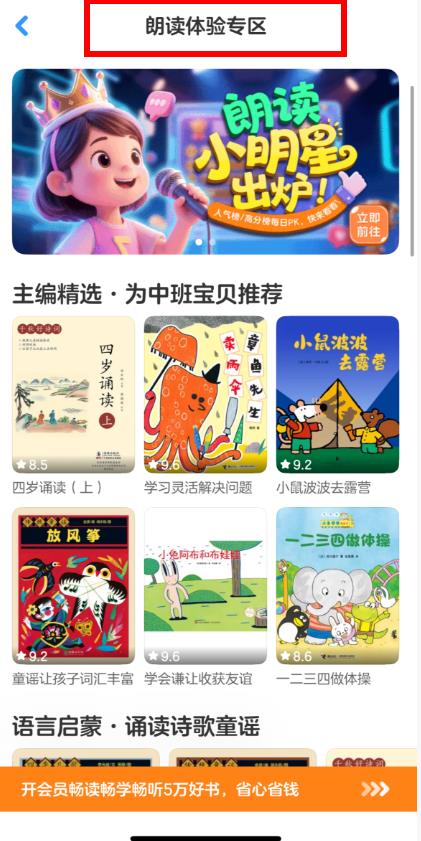 3、进入朗读体验专区页面,即可选择相应的绘本,开启朗读体验。
