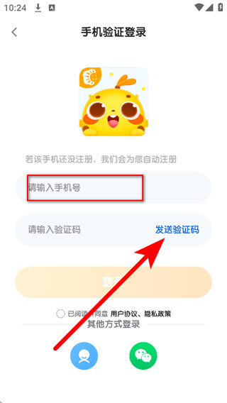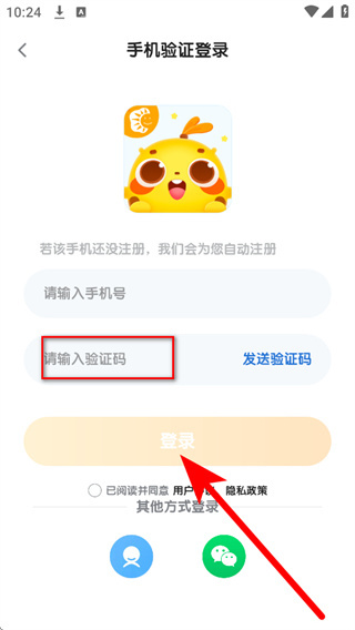 4、将收到的短信验证码填入验证码栏,勾选协议后,点击登录完成账号登录。