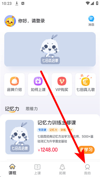 1、打开七田真启蒙,点击底部导航栏的我的选项,进入个人中心页面。