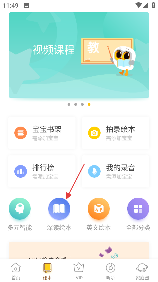 2、在绘本页面,点击深读绘本按钮,进入深读绘本列表。