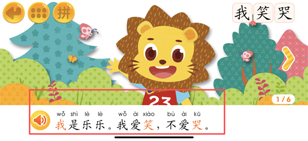 4、进入故事阅读页面后,即可根据拼音,尝试着读故事。