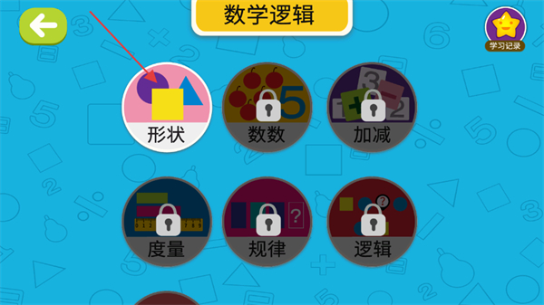 2、在数学逻辑学习页面,点击形状可进入形状学习环节。